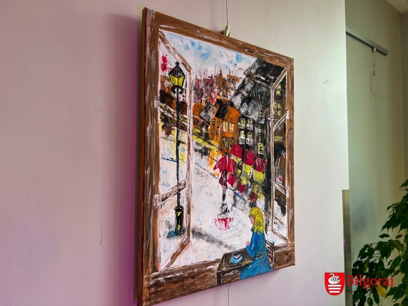 Na ekspozycji zaprezentowano prace wszystkich uczestników. Są to rysunki i obrazy wykonane głównie w technice akrylowej, a także pojedyncze prace olejne. Dzieła powstały wokół trzech tematów: motywów związanych z Biłgorajem, hasła "patrzę przez okno" oraz motywu drzew.