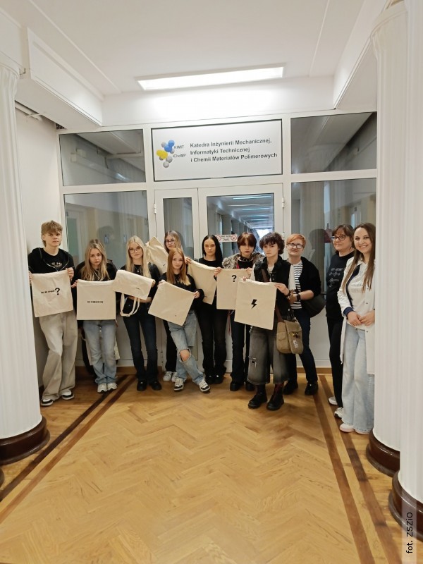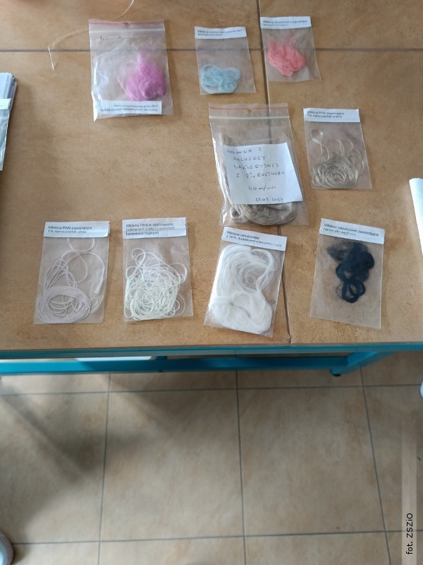 W czasie wizyty poznali również niezwykłe włókna i materiały włókiennicze. Wśród nich znalazły się materiały zmieniające barwę pod wpływem temperatury, szczególnie przydatne w odzieży dla niemowląt i sportowców. Duże wrażenie zrobił na uczniach KEVLAR - lekki, a jednocześnie bardzo wytrzymały materiał, wynaleziony przez amerykańską chemiczkę polskiego pochodzenia Stephanie Kwolek, wykorzystywany m.in. do produkcji hełmów ochronnych, kamizelek kuloodpornych, czy nart. Poznali także PLA (poliaktyd) - biodegradowalny polimer otrzymywany z surowców odnawialnych, takich jak mączka kukurydziana. Zobaczyli również nici chirurgiczne, opatrunki alginianowe stosowane przy ranach z wysiękiem oraz opatrunki z dodatkiem węgla aktywowanego i srebra o właściwościach antybakteryjnych.