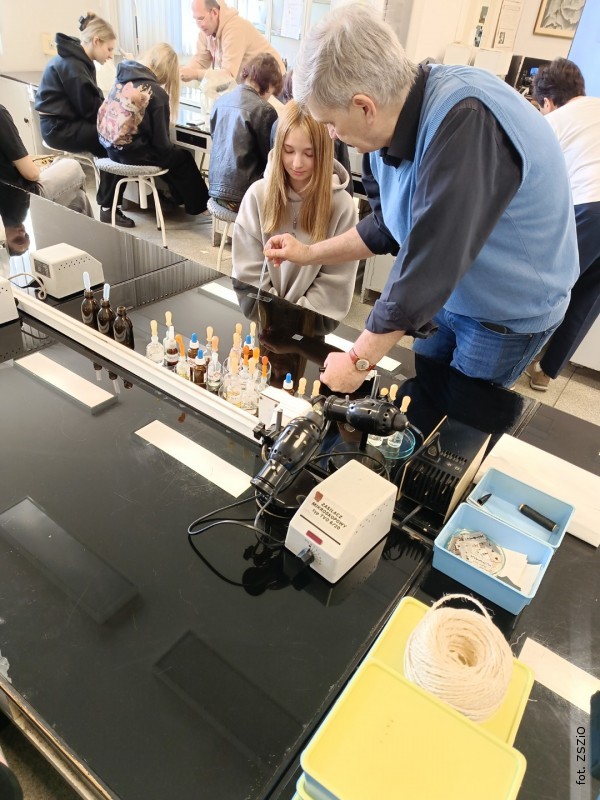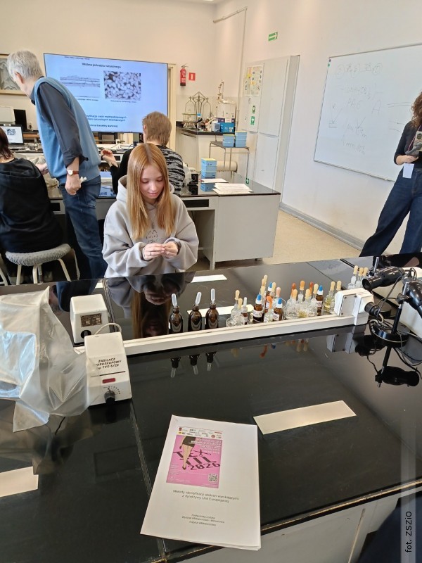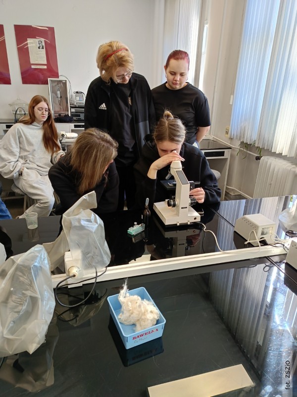 Z kolei warsztat "Mikroskopia włókna" przybliżył uczniom metody identyfikacji włókien w widokach wzdłużnych i poprzecznych, a także poprzez próbę spalania. Okazało się, że rozpoznawanie włókien naturalnych jest stosunkowo proste, natomiast włókna chemiczne wymagają większej wiedzy i doświadczenia.